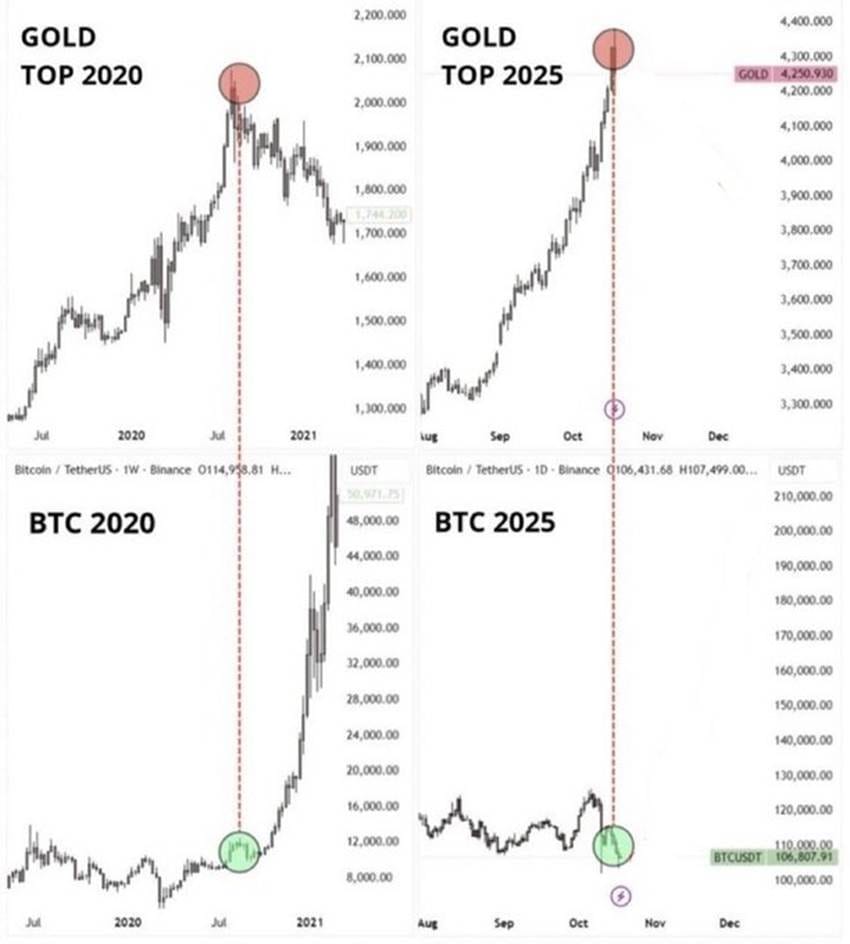 Que pasó con Bitcoin en 2020 cuando el Oro estuvo en máximos?. (ver imagen)
